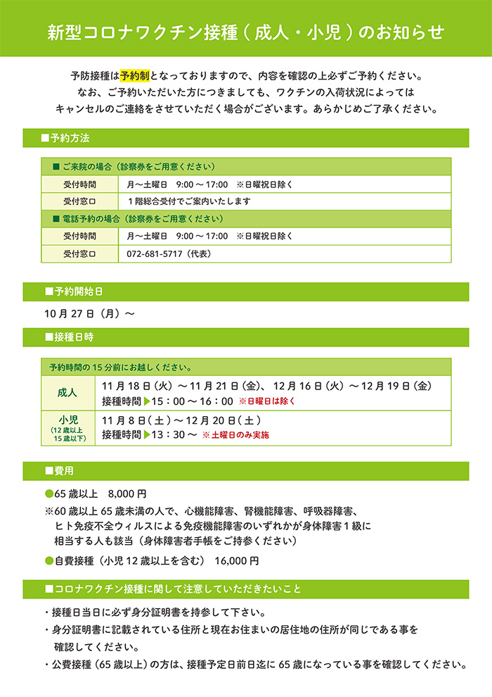 2026年度のみどりヶ丘病院新型コロナウイルスワクチン接種についてお知らせします。