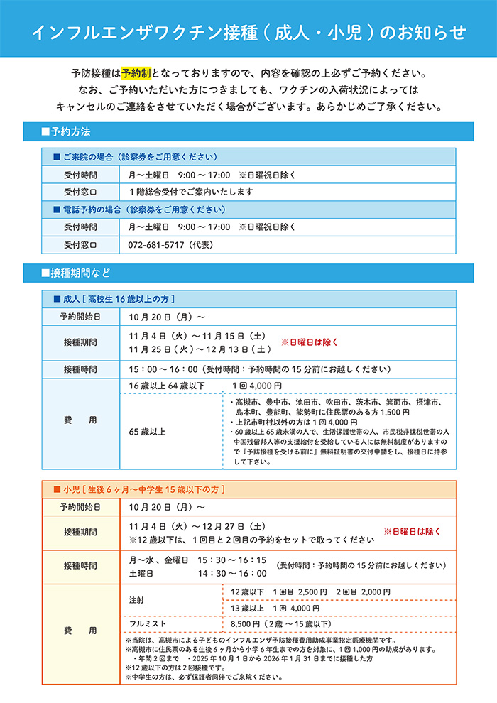 2026年度みどりヶ丘病院インフルエンザワクチン接種についてお知らせします。