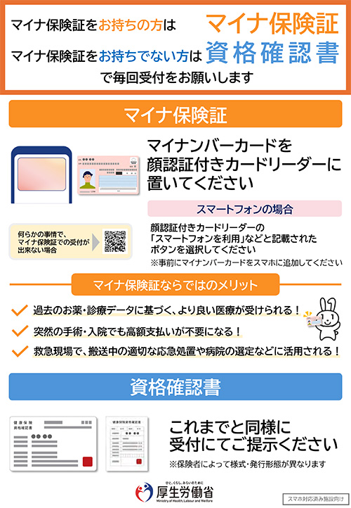 当院では、マイナンバーカードを搭載したスマートフォンもマイナ保険証としてご利用いただけます。ご利用方法の詳細は下記PDFをご確認ください。